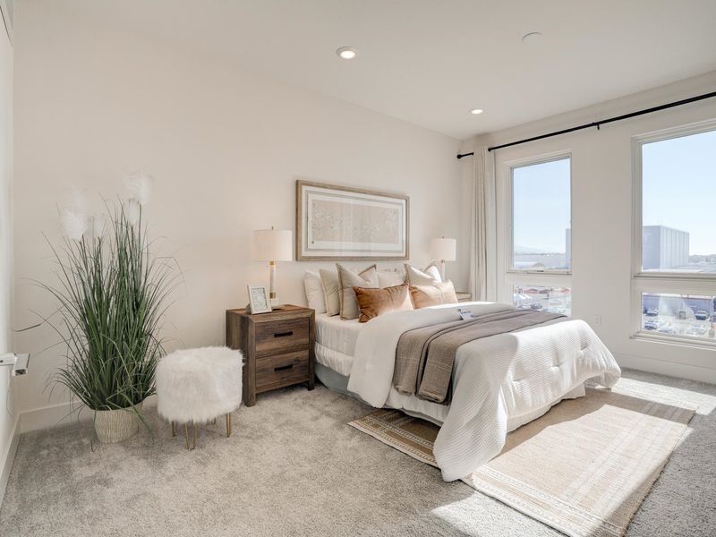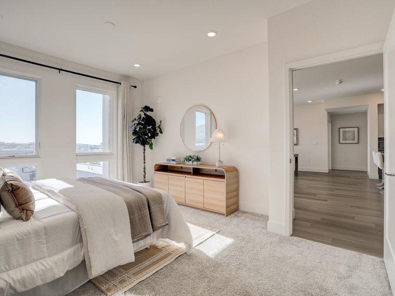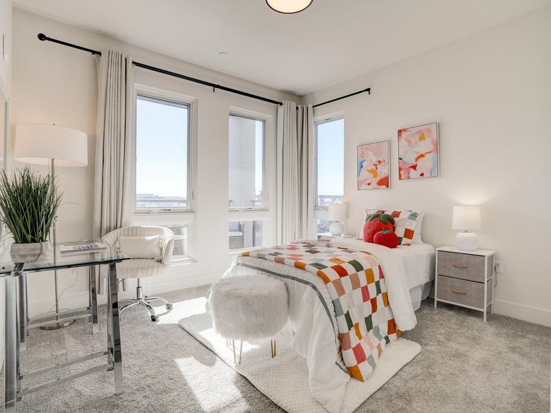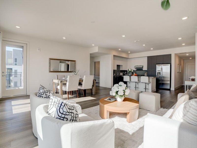 Modern Luxury at Chroma in Innovation! Experience the perfect blend of style and convenience in this stunning, near-new condo in Fremont’s most sought-after community. This sun-drenched, open-concept home features a $15,000 premium high-floor position, offering enhanced privacy and excellent natural light.The gourmet kitchen is a showstopper, boasting a quartz island, gas cooktop, stainless steel appliances, and a designer backsplash. Sleek wood flooring and fresh interior paint elevate the contemporary living areas. The thoughtfully designed floor plan features a private primary suite separated from two additional bedrooms, a private balcony, in-unit W/D, and central A/C & heat. Rare find with 2 dedicated underground parking spots plus storage. HOA covers gas, trash, and sewage. Unbeatable location: Walking distance to Warm Springs BART with easy access to 680/880. Enjoy world-class community amenities: clubhouse, gyms, pool, BBQ areas, a 4-acre park, and the newer Lila Bringhurst Elementary.