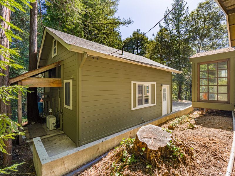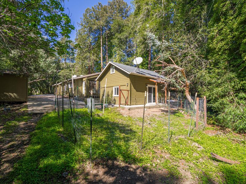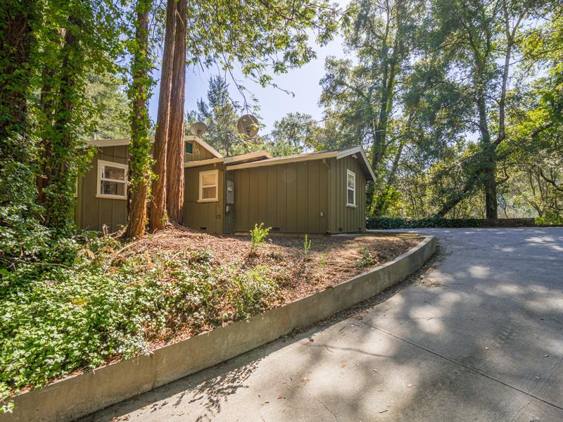 Terrific cottage in the woods! Only 6 minutes to the Corralitos Market this charming 2-bedroom 1 bath home nestled in the Redwoods gets plenty of sunshine. With a spacious lot size of 28,053 sq ft, this property offers ample outdoor space and privacy. The open floor plan with separate family room offers a versatile space for relaxation or entertainment, and the wood stove heating ensures a warm atmosphere during cooler months. The floor plan has great separation with bedrooms on separate ends of the house and an enclosed laundry porch for convenience. Detached garage is greatly improved- perfect home office, artist studio or perhaps guest quarters. All within the boundaries of award-winning Bradley Elementary, Aptos Junior High and Aptos High School. You are going to fall in love with this charming cabin in the woods at a very attractive price!