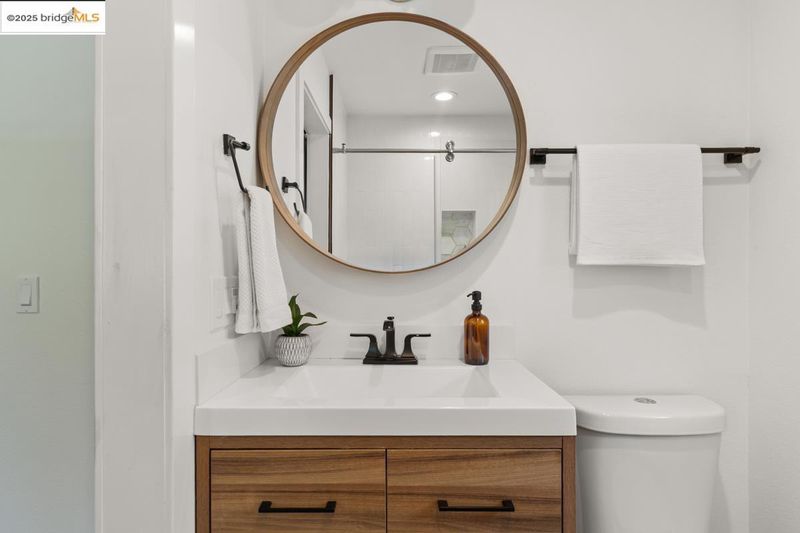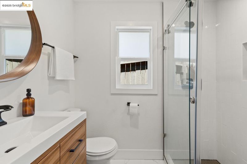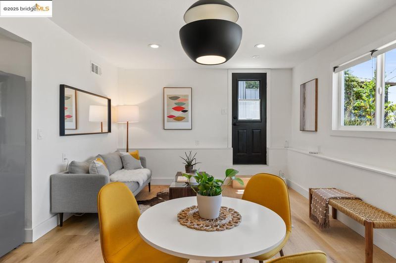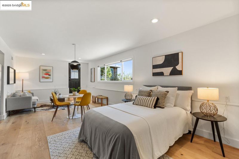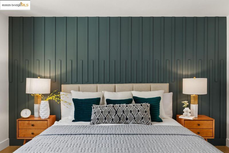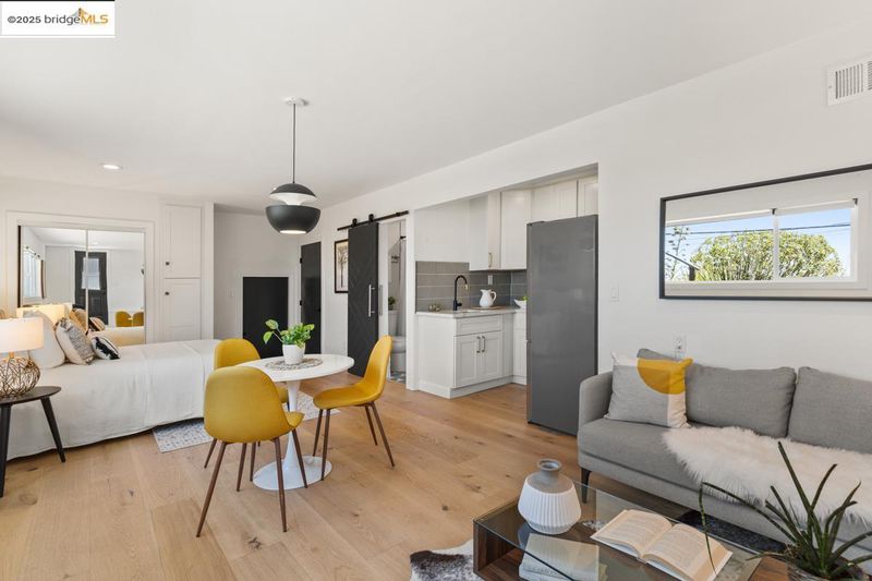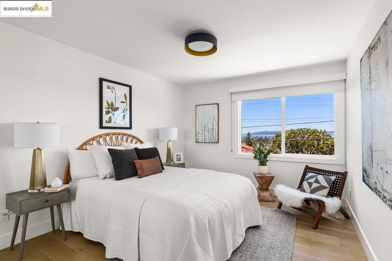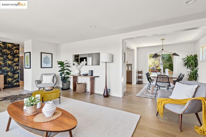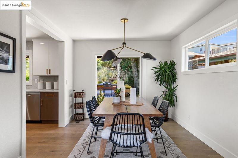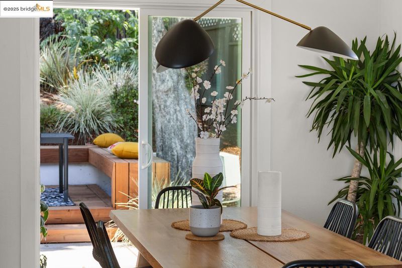Set on an expansive lot, 7376 Stockton is a rare find. This mid century modern home offers sweeping Bay views, extensive updates, and a backyard that feels more like a private park than your typical yard. The main level features three spacious bedrooms and two full baths, all filled with natural light and clean, intentional design. Downstairs, a bonus space*—with its own entrance, bathroom and kitchenette—offers the kind of flexibility that makes life easier. The seller used it in the past for hosting visitors, working from home, and as extra living space. Throughout the home, you’ll find elevated design choices: custom Heath ceramic tile, sculptural light fixtures, and bold, well-placed color that adds personality. Step outside, and it only gets better—professionally landscaped grounds wrap around the house, layered with places to gather, garden, or just watch the sun slip behind the Golden Gate. With more than a dozen fruit trees, you might even snack along the way. Tucked into one of El Cerrito’s most beloved neighborhoods—minutes from Solano Avenue and zoned for Kensington Elementary*—this home is a rare blend of style, comfort, and setting. *Buyer to verify
