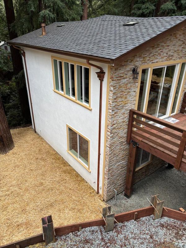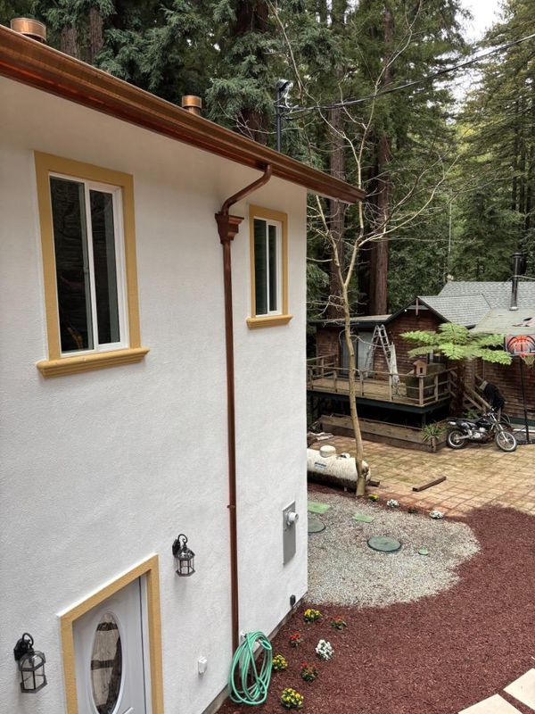 Appraised for $1,215,000. Brand new construction! Watch video walk thru and 3D Tour. Just competed! Never lived in! Seller is licensed contractor and engineer. Beautiful Carmel Stone facade framed in the tall redwoods invokes a touch of Carmel and Boulder Creek styling. Custom amenities include a large open-concept gourmet kitchen, spacious living room with vaulted ceilings, bonus room, and an outdoor deck that is ideal for sunset entertaining or quiet stargazing among the redwoods. Distinctive details include extra-large tile flooring throughout, floor-to-ceiling tile in the dual-sink bathrooms and laundry room, Italian marble-style countertops, custom kitchen cabinets, copper cladding on exterior facia with copper rain gutters, downspouts, and roof fixtures. Recessed lighting, custom Brazilian Sapele wood stairway railings, and motion sensor lighting in bathrooms and laundry room. Located in the acclaimed San Lorenzo Valley School District with schools just minutes away. This home was built beyond current codes and specs. Everything has been built, in some cases overbuilt, with every attention to detail. jacuzzi w/jets. Engineered septic system cost $100,000.