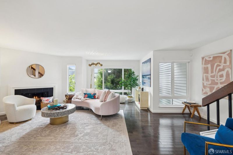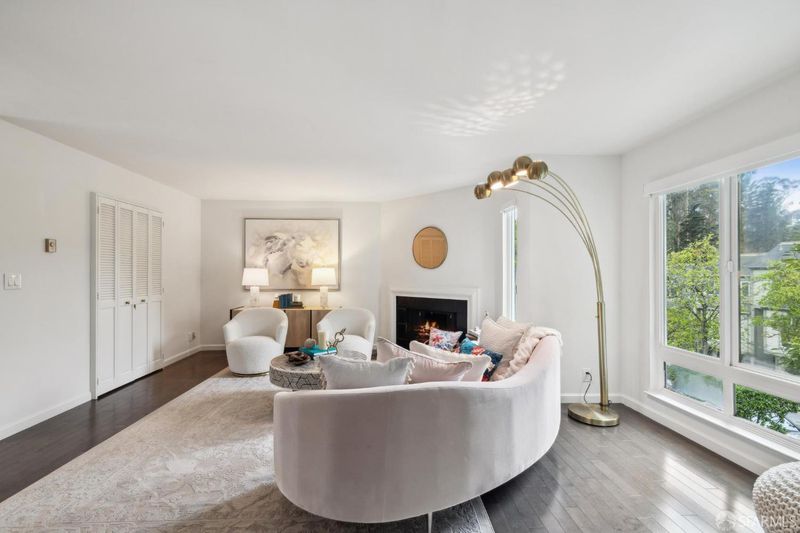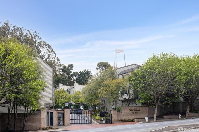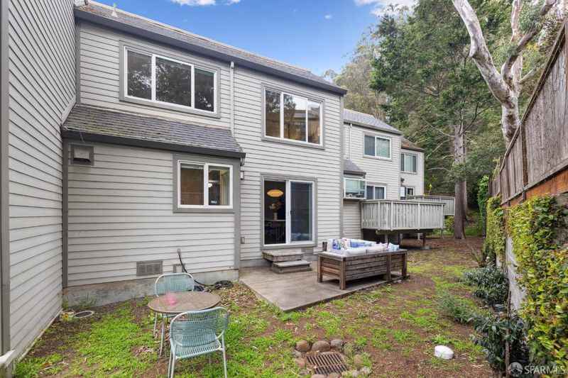 Amazing value! This townhouse-style condo lives like a single family house! The main level of the residence features a spacious living room with a wet bar and a fireplace, a formal dining area open to the kitchen, and a gourmet chef's kitchen equipped with stainless steel appliances and a peninsula with an overhang for informal dining. Around the corner is a convenient powder room with laundry. Sliding doors lead to a peaceful exclusive patio area surrounded by landscaping, allowing for seamless indoor/outdoor flow. The upper floor houses three bedrooms and two bathrooms on one level. The back bedrooms overlook lush greenery through oversized windows and share an updated hallway bathroom with a shower over the tub. The primary suite offers attractive outlooks and a stylish ensuite bathroom with a walk-in, glass-enclosed shower. Downstairs, the garage accommodates two cars side-by-side as well as an additional bonus storage area. Additional amenities include automatic blinds and in-ceiling radiant heat. This home is situated in the Woods, a peaceful gated community nestled between Forest Hill and Forest Knolls. Homeowners can enjoy the common gym, sauna, deck and social room. Close to hiking trails, shopping, Forest Hill MUNI, and easy freeway access.