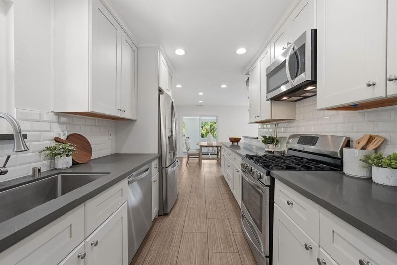- Countertop - Quartz, Dishwasher, Garbage Disposal, Microwave, Oven Range - Gas, Refrigerator