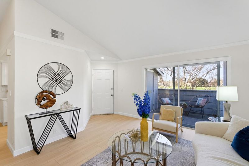 A warmer end of unit condo home , located at a well maintained complex in North Valley San Jose. 2nd floor & grand floor plan. The end of unit bright with nature light daily, Recently replaced new luxury vinyl floors through out, New cabinets at Kitchen & BAthrooms, New quartz counter tops at kitchen, New stainless steel appliances: Stove, Cooking fan , Dishwasher, Refrigerator, Disposal. Double pane windows, Recessed lights. Fresh painted interior walls. & ceilings. Move in ready. One car detached garage # 107. Community club house & pool. Facing goulf course with great privacy. Near Costco, Post Office, Ranch 99 & H Mart supermarket, BART Station, Super Microw. Easy to access HYW 880, 680 & 101