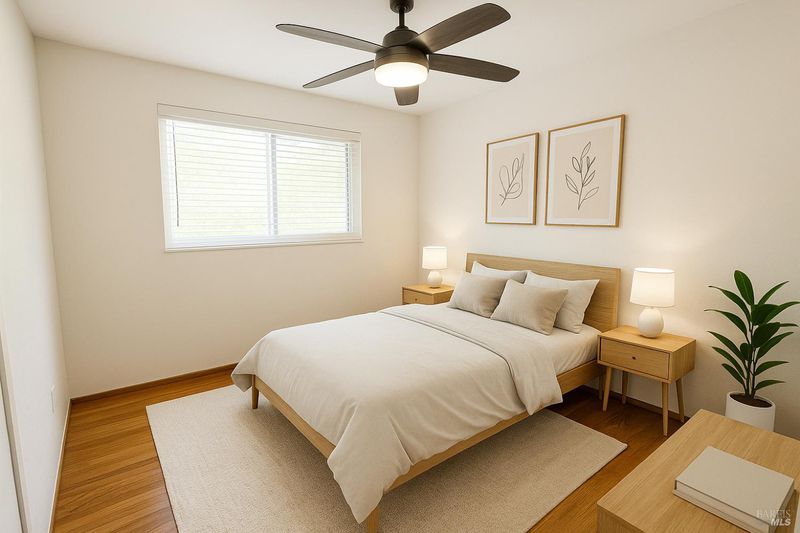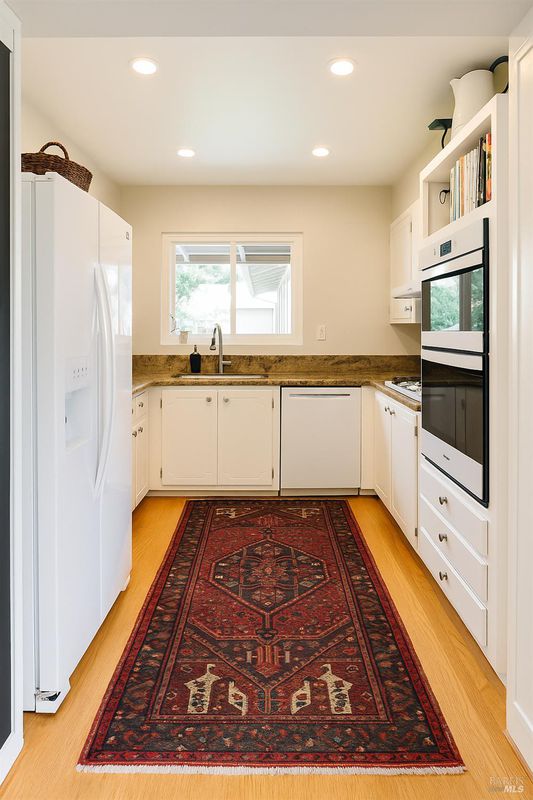 Welcome to this lovingly maintained 3-bedroom, 2-bathroom home offering 1,365 square feet of inviting living space. Designed for both comfort and functionality, this residence features a bright skylight, an open dining area seamlessly connecting the kitchen and living room and a cozy fireplace perfect for gathering with family and friends. Gleaming hardwood floors run throughout, adding warmth and character to the interiors. The home's practical layout includes an attached two-car garage with convenient interior access and plenty of storage space. Outdoors, you'll find a spacious patio ideal for entertaining, complete with a brick BBQ for summer cookouts, as well as additional parking spaces for guests. Perfectly situated near the Bel Aire Shopping Center, you'll enjoy easy access to Whole Foods, Trader Joe's, Target, OSH and a variety of local dining options. Schools, parks and public transportation are just minutes away, making this an ideal location for both everyday living and commuting. Don't miss your chance to call this beautiful Napa home your own, where timeless charm meets modern convenience.