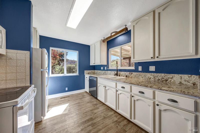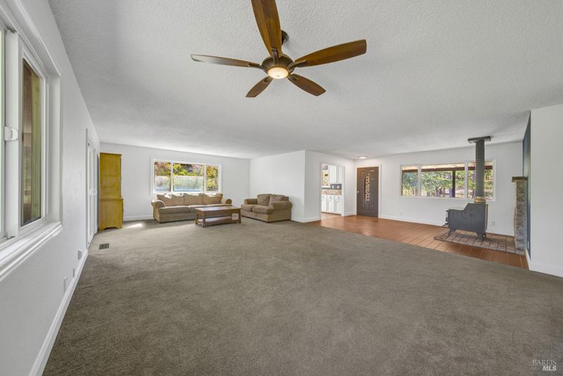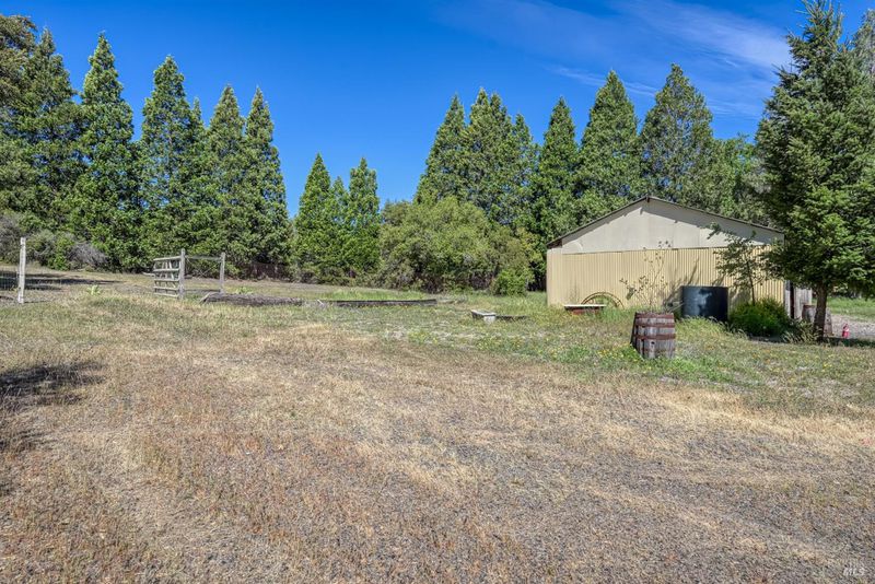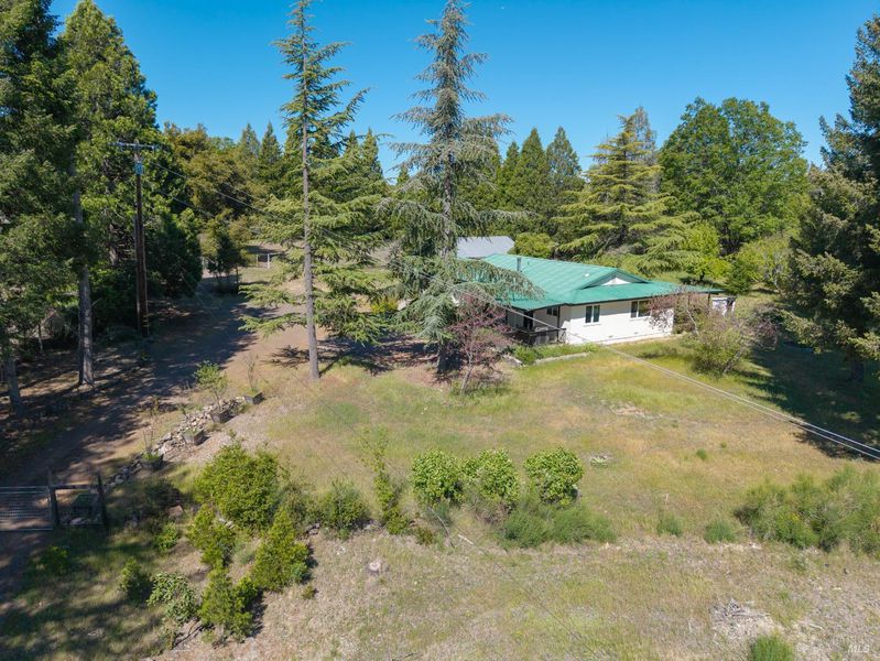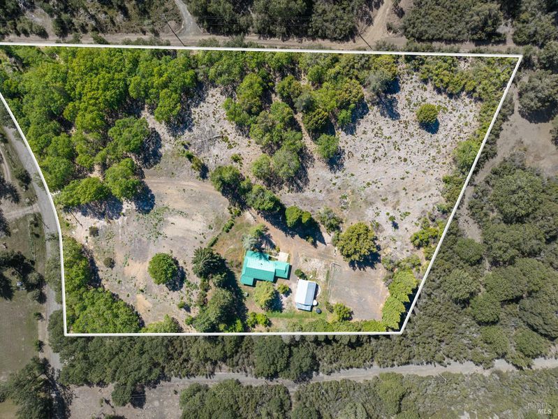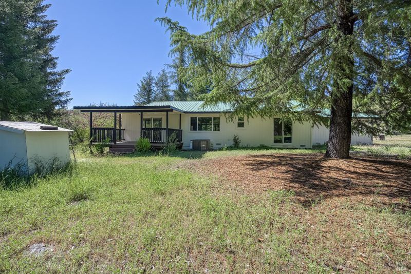 Enjoy country living at its finest at 9115 Wildcat Road, a beautifully situated 2-bed, 2-bathroom home on about 7 acres of private land in peaceful Kelseyville. Sale includes the purchase of two separate parcels, providing space, privacy and future potential. With an open floor plan, abundant natural light, and room to grow, this property offers comfort, versatility, and stunning rural surroundings. Step onto the covered front porch and enter into a spacious dining and living room with large windows that overlook the expansive backyard. The heart of the home flows seamlessly into the kitchen. The master bedroom features a sliding glass door to the backyard and an en-suite master bath, offering privacy and convenience. A well-placed laundry room is located near both bedrooms. Outside, a covered back patio provides a shaded retreat for outdoor dining or simply enjoying the serene landscape. There is an additional structure of approximately 875 sqft that offers endless potential as a workshop, storage space, or creative studio. **This listing includes two parcels. Primary APN of 011-043-030 at 3.77 acres as well as the adjacent lot with APN 011-043-100 at 3.3 acres.