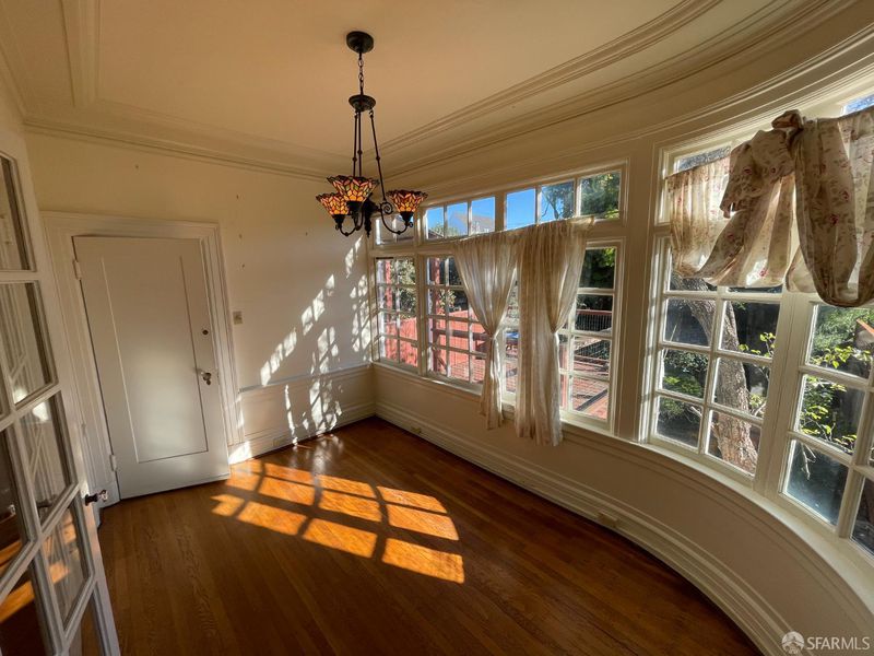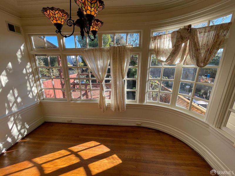 One of SF's original architectural treasures. The classic and elegant interior sets the tone for a home full of original character. The home opens to a beautiful spiral staircase with a beautifully finished wood banister. This rare semi-attached home greets you with warm hardwood floors and awash with natural light that radiate character and elegance, creating a cozy inviting atmosphere. A spacious formal living room seamlessly connected to the fine dining room, offering an inviting layout for family dinners and formal gatherings. The updated kitchen has new appliances and awash with natural light. Stunning sun-soaked sun rooms on the first and 2nd floor grace the home's levels and view of the beautiful tranquil backyard. The sun rooms capture natural light making it a perfect spot for morning coffee or evening relaxation.