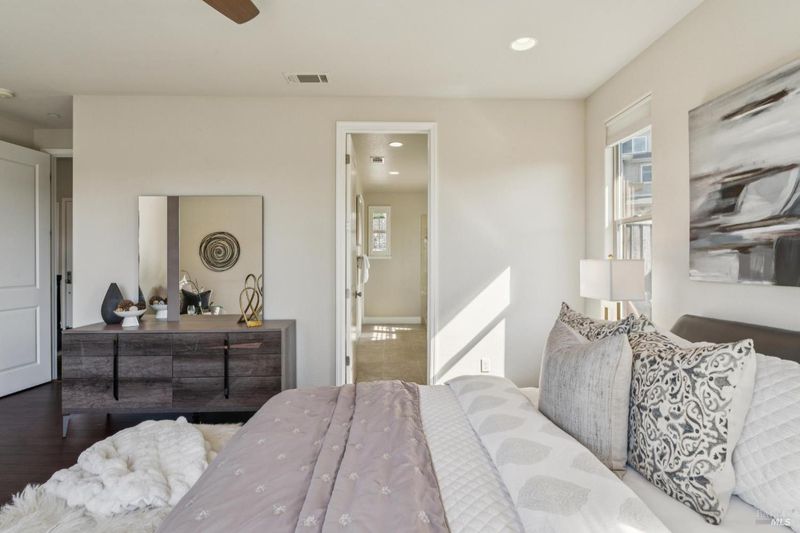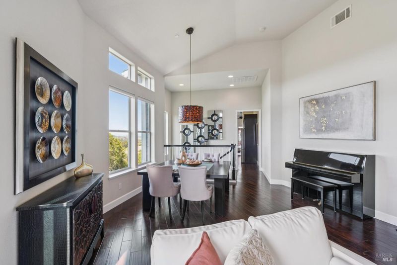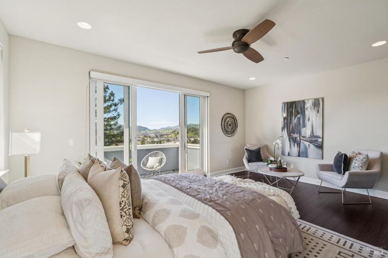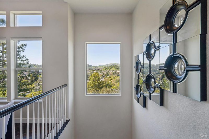 Set within an exclusive gated enclave of just five homes, this 2,478 sq. ft. custom-built contemporary residence on a 1.06 acre lot captures sweeping mountain-to-bay views from Marin's iconic Civic Center to Napa from nearly every room. Cathedral ceilings and window-lined walls flood the home with natural light throughout the day showcasing an open-concept floor plan with multiple balconies and a pergola-covered terrace designed for effortless indoor-outdoor living. Watch July 4th fireworks from your dining room. Listen to summer concerts from your patio. Every day here will feel extraordinary. The main-level primary suite is a serene retreat with its own balcony, sitting area, spa-like bath, and walk-in closet. A private office off the family room provides a convenient work-from-home option, with two additional bedrooms and a versatile lower-level space ideal for an art studio or exercise space. Built in 2012 and meticulously maintained, the home also offers a 2-car garage, private parking alcove, mature citrus trees, and a gorgeous adjoining hillside with scenic easement enhancing privacy and protecting the surrounding natural beauty. Close to Hwy 101, China Camp hiking & biking trails, the Civic Center, JCC, and the farmers market, yet peacefully above it all. This is not just a home. It's a vantage point.