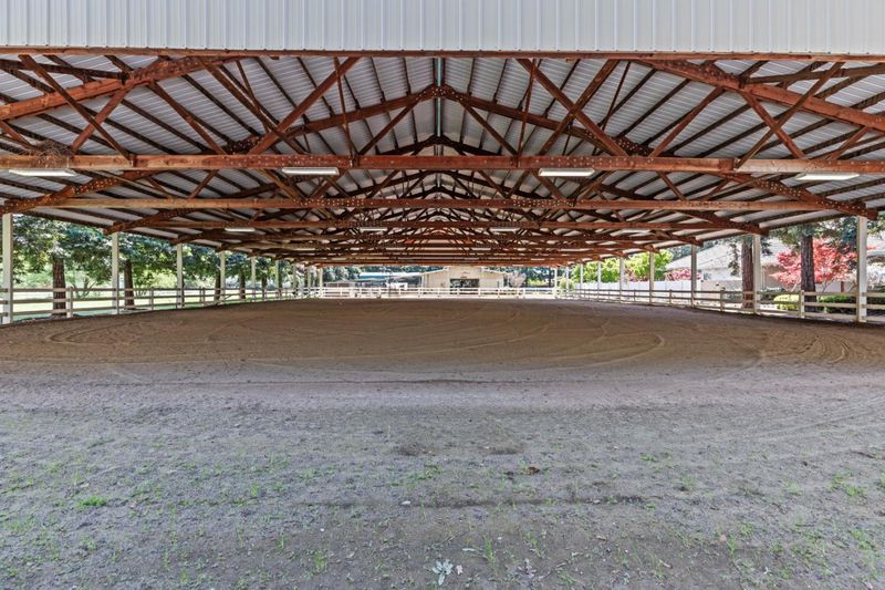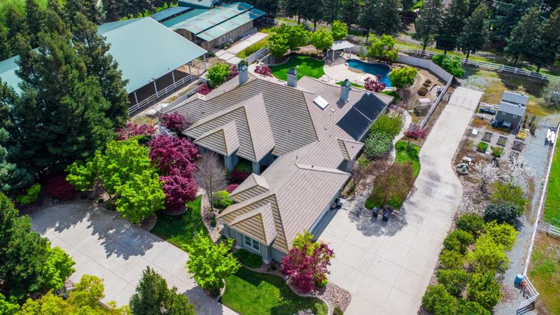 Welcome to 5000 Peach Blossom Ln - A Private, Luxury Retreat on 3.22 serene acres, single-story estate offers the perfect blend of elegance, comfort, and equestrian excellence. Built in 2003, this expansive 4,678 sq. ft. home features 5-6 bedrooms and 3.5 bathrooms with 3 distinct wings. At the heart of the home is a chef's dream kitchen, with top-of-the-line Viking appliances, a Sub-Zero refrigerator, oversized center island with sink, a separate prep sink by the cooktop, warming drawer, double ovens, and a spacious walk-in pantry. The finished 3-car garage offers ample storage, while 72 fully owned solar panels provide energy efficiency for both the home and the pool. Step outside and discover your own resort-style oasis. The oversized pool features 3 waterfalls, surrounded by lush landscaping, a peaceful koi pond, and an abundance of fruit trees. For equestrian enthusiasts, this property is truly exceptional. It features two arenas, including a 100x160 covered arena equipped with sprinklers, lighting, water, and coarse sand. The custom-designed horse barn includes covered stalls with power and water, dedicated wash bay, tack & feed room, and a full bathroom. Additional amenities include an RV pad and OID irrigation. This is more than just a home it's a rare opportunity!