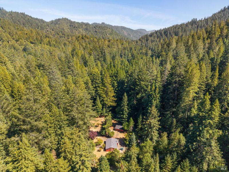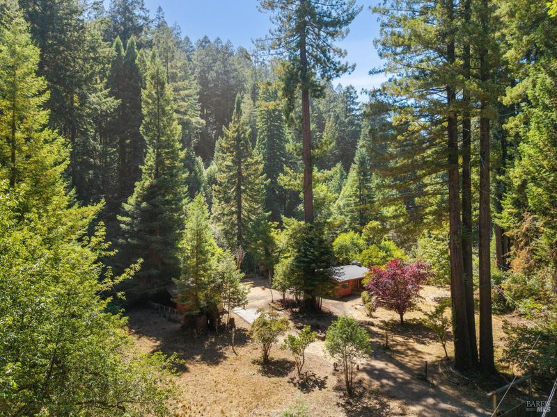 Tucked away on 2.71 acres in the heart of the redwoods, this private cabin retreat offers the rare combination of sunshine, running creek frontage, and true seclusion. Kidd Creek flows through the property, creating a serene, storybook setting with the soothing sounds of water year-round. A private driveway leads you into your own peaceful escape, where privacy and nature take center stage. The property features an outdoor shower, RV hookup, and a standalone garageperfect for guests, adventure gear, or extra storage. With easy access yet complete privacy, this is a special opportunity to own a tranquil redwood sanctuary designed for both relaxation and practicality.