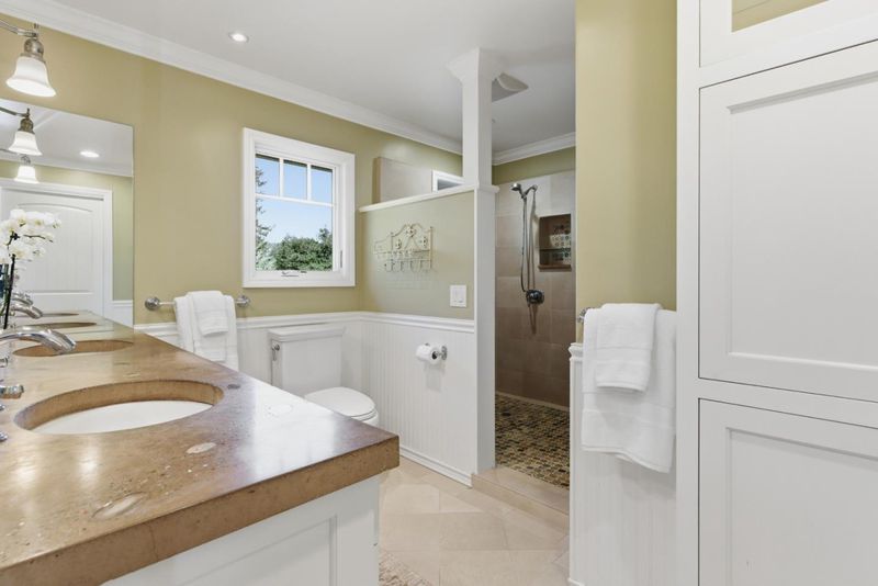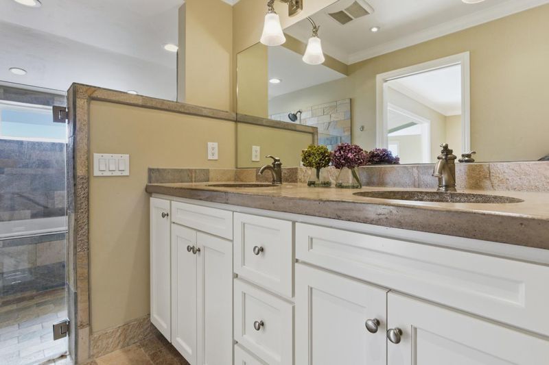 - Double Sinks, Full on Ground Floor, Oversized Tub, Primary - Stall Shower(s), Stall Shower - 2+, Stone, Tile, Updated Bath