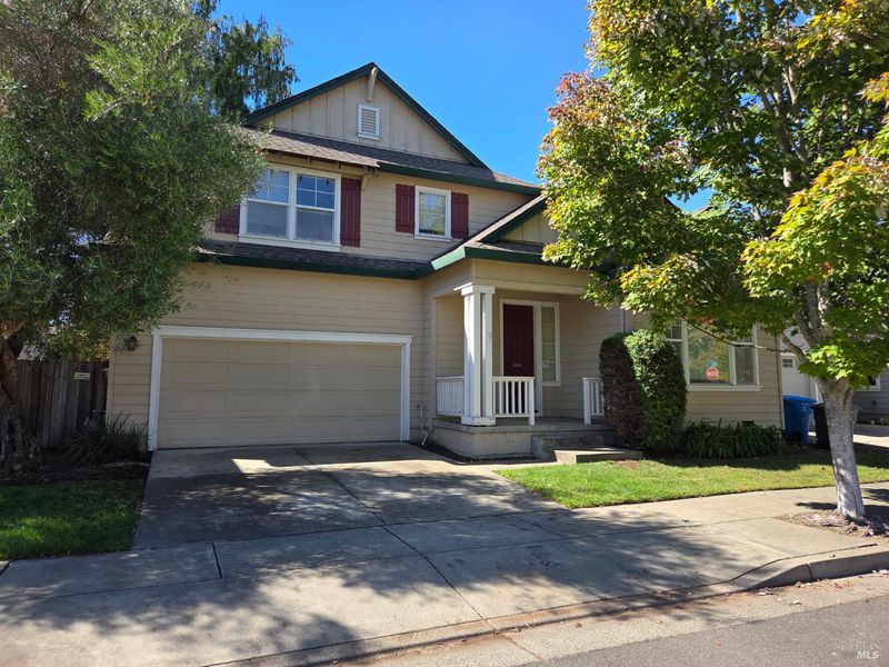 This former model home is located on a quiet, dead-end street in a desirable school district. Step in and find a spacious light-filled 3-bedroom, 2.5-bath residence offering an open floor plan with soaring cathedral ceilings and abundant windows that fill the home with natural light. The thoughtfully designed kitchen features a large island, ample cabinetry, and a separate eating area perfect for everyday meals, work area or entertaining guests. The Family room includes a cozy gas fireplace, creating a warm and comfortable gathering space. Upstairs, you'll find ample proportioned bedrooms and the laundry area. This home is waiting for its next chapter. Bring your dreams and make it your own. Enjoy the convenience of being close to parks, shopping, and easy commuter access, all while tucked away in a peaceful neighborhood setting.