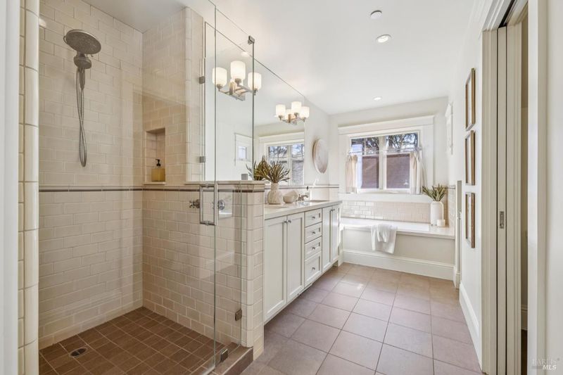 - Double Sinks, Shower Stall(s), Soaking Tub, Tile, Window