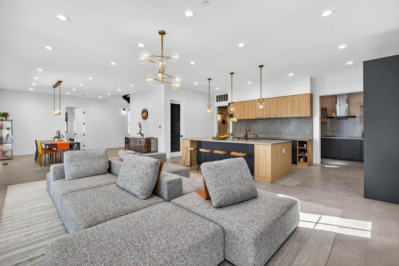 Newer 2024 built contemporary home in the highly sought-after Monta Vista neighborhood, near Apples Infinite Loop & Spaceship Campus, major tech hubs, & Hwys 85 & 280. Top-rated schools include Lincoln Elem., Kennedy Mid., & Monta Vista High. Featuring a bright open-concept layout with high tray ceilings, recessed lighting, skylights, & large-format tile flooring. Flow connects the family room, dining area, kitchen, & outdoor living spaces. The family room showcases a linear fireplace & feature wall. The kitchen has a large center island, two-tone cabinetry, stainless steel appliances: built-in refrigerator & wall ovens, cooktop, hood, butlers pantry, & designer fixtures. A dedicated bonus room & spacious upstairs loft with built-in workstation, floor-to-ceiling storage, wet bar, & beverage fridge. The primary suite features a private balcony, spa-inspired bath with freestanding soaking tub, dual floating vanity, slab-style tile walls, frameless glass shower with niches, designer sconces, & water closet. Designer-appointed bathrooms throughout, dedicated laundry room, & custom mudroom. Exterior features a covered patio with skylights, additional open patio, expansive paver areas, & a private fully fenced backyard with lawn, hardscape, & low-maintenance landscaping.