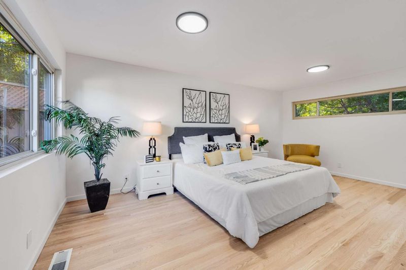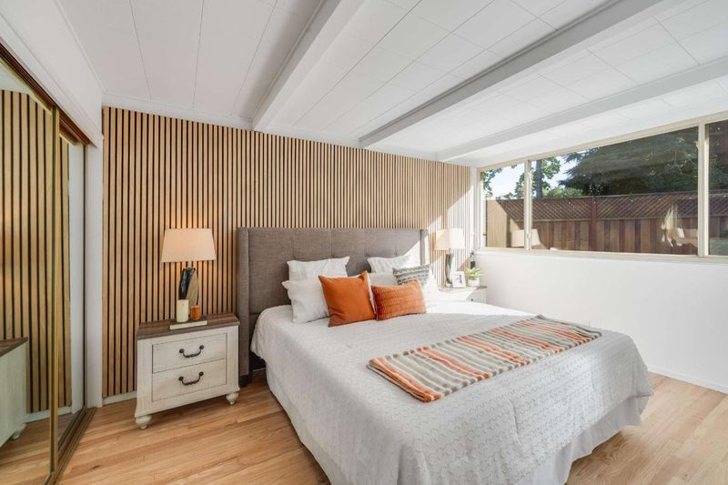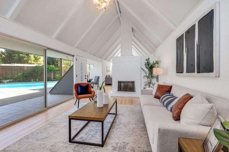 Beautifully situated on a quiet cul-de-sac, 744 Jackpine Ct presents a rare opportunity to own a fully updated mid-century modern Gavello home in the heart of Sunnyvale. Offering 4 bedrooms, 2 bathrooms, and a versatile loft across 1,973 sq ft, this home sits on an expansive 8,625 sq ft lot designed for both comfort and entertaining. Oversized windows fill the home with natural light, highlighting cathedral ceilings, a welcoming fireplace, and newly refinished oak hardwood floors throughout. The thoughtfully updated kitchen features freshly painted cabinetry, stone countertops, and stainless-steel appliances, seamlessly flowing into the family room. An enclosed atrium provides a charming bonus space for relaxing or hosting, while the private backyard showcases a sparkling pool and multiple areas to unwind. Bathrooms have been tastefully refreshed with quartz countertops, updated cabinetry, and reglazed finishes. Ideally located near Braly Park, top-rated schools, vibrant dining and shopping along El Camino Real, and major tech campuses including Apple, Google, and LinkedIn, this home also offers easy access to Lawrence and Central Expressways and highways 280, 85, and 101, perfectly balancing serenity with convenience.
