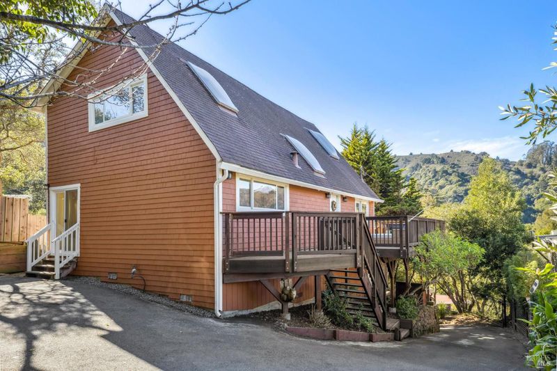 Enjoy easy living in Tam Valley in this adorable Mill Valley house with treehouse charm. With 3 bedrooms within the main residence and a possible 4th accessed via external staircase making it ideal for use as a home office or au pair unit or space for houseguests, this home is equal parts practical & charming. Featuring a kitchen w granite countertops and redwood bar that leads to a sun-filled dining area and sweet sitting area. There are two bedrooms and a full bath located on this level, along with plenty of storage. A second huge living space is located upstairs and adjacent to the primary suite that has walk-in closet, additional storage, vaulted ceiling and updated en-suite bath with walk-in shower. Enjoy the tranquil outdoors and views of Mt Tam from the deck or hot tub, or play on the flat fully-fenced turf area. Gated entry, parking for 2 cars at the top of the driveway. Buzz down to Tam Valley for hip dining options (Pizza Hacker, The Junction Beer Garden, Hook Fish, Equator Coffee, Bob's Donuts, Good Earth, and so much more) or to downtown MV. Or, stay within the neighborhood and enjoy hiking and biking trails with Miwok trailhead .5 miles distance away and Eastwood Park with playground, green belt, pickleball and tennis courts, picnic tables and restroom. Tons of seller upgrades throughout - this is a winner!