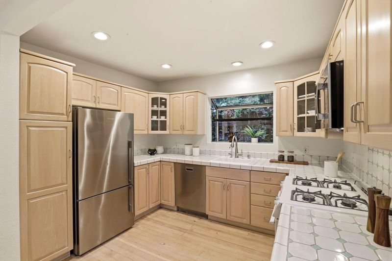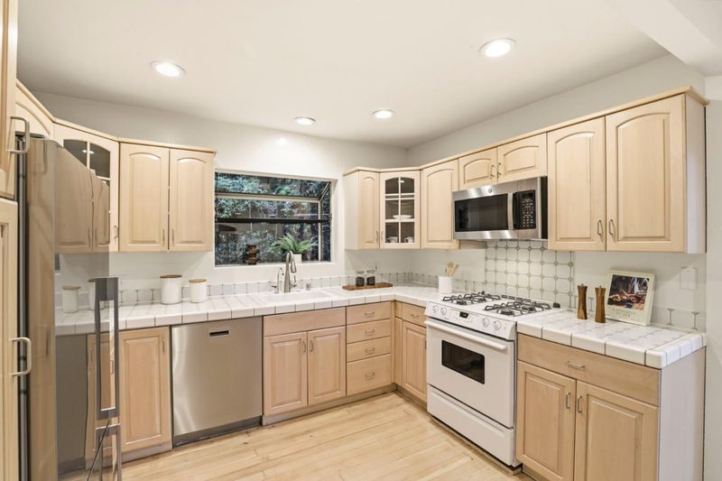 - 220 Volt Outlet, Countertop - Tile, Dishwasher, Garbage Disposal, Microwave, Pantry, Oven Range - Gas, Refrigerator