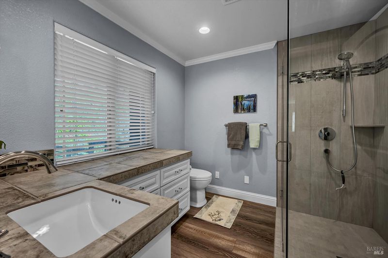 Escape to the tranquility of Lake County with this beautifully maintained 3-bedroom, 3-bathroom multi-level home, offering 2,056 square feet of comfortable and thoughtfully designed living space in the charming community of Kelseyville. This home has served as a cherished vacation retreat and is now ready to welcome new owners seeking a peaceful lifestyle surrounded by nature. Set on a beautifully landscaped lot with a desert-inspired aesthetic, the grounds have been meticulously designed for minimal upkeep. Enjoy a low-maintenance outdoor lifestyle with natural hardscape elements, gravel walkways, and drought-tolerant plants that blend effortlessly into the stunning Lake County landscape. The property also includes an extra gravel parking pad for guests, trailers, or additional vehicles. Inside, the home features quality craftsmanship and extra touches throughout, showcasing the care and pride of the original builder. A newly renovated bathroom adds a fresh modern touch, and the spacious kitchen offers both style and functionality with a walk-in pantry, abundant cabinetry, and a built-in wine fridge with bar areaperfect for entertaining or relaxing with a glass of wine. The primary suite is a true sanctuary, featuring breathtaking views, a large walk-in closet.