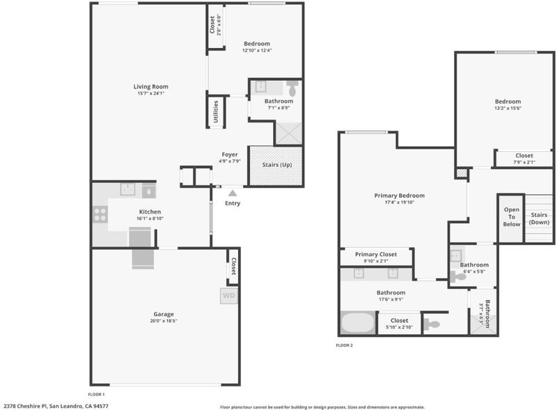 Welcome home to 2378 Cheshire Place in San Leandros Sandpiper Community. This spacious 3 bedroom 2.5 bath townhouse offers 1,723 square feet of comfortable living. Soaring ceilings, large stairway windows, and a floor to ceiling wood burning fireplace create a warm and inviting atmosphere. The kitchen is designed for everyday living with quartz countertops, stainless steel appliances, and a sunny breakfast nook. A flexible downstairs den makes the perfect playroom, guest room, or home office. Upstairs, the primary suite includes a Jack and Jill bath, wall to wall closet, and cozy reading nook. Recent updates include new carpet on the stairs, upstairs hallway, and secondary bedroom. Outdoors, enjoy one of the largest patios in the community, perfect for barbecues, gardening, or entertaining. An attached 2 car garage plus driveway parking for 3 more vehicles provides ample space. Community amenities include a clubhouse, pool, and hot tub. Minutes from BART, Interstate 880, shopping, dining, and parks, and within walking distance of McKinley Elementary and San Leandro High School, this home combines comfort, convenience, and location.