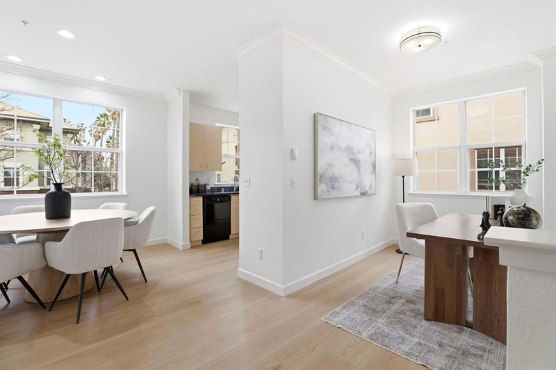 Welcome to 362 Meridian Ave, a spacious and stylish 3 bedroom, 2.5 bath corner-unit townhome offering 1,512 sq. ft. of thoughtfully designed living space. With only 1 shared wall, an attached two-car garage, and rare additional driveway parking, this home offers excellent privacy and everyday convenience. Inside, enjoy an inviting interior with a cozy fireplace, elegant chandeliers, and recessed lighting throughout. Carpet and luxury vinyl flooring create a warm, functional layout ideal for daily living. Renovated bathrooms feature a modern design, including a bidet in the private primary ensuite. Adjacent to the kitchen, a flex space provides versatility for a home office, study, or bonus living area. The kitchen includes essential appliances such as a dishwasher, refrigerator, and stove. Step outside to your private patio for morning coffee or evening relaxation. Nearby community amenities include a playground and outdoor gym, perfect for dog walks, playtime, or enjoying the outdoors. Enjoy a walkable lifestyle with a Walk Score of 89. Safeway is accessible via a pedestrian walkway with no street crossings, and local favorites like Hapas and Chromatic Coffee are just blocks away. Highlights include an upstairs washer/dryer and ample storage. Come see this home before its gone!