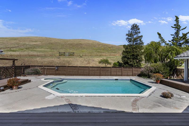 Live the Dream in Tres Pinos! Nestled into the exclusive gated Stonegate community, this gorgeous 9+ acre property blends resort-style living with wide-open Country FREEDOM! Whether you're an equestrian enthusiast, hobby farmer, 4-H/FFA family or just craving space to breathe, this property DELIVERS! The 2,560 sf barn includes 4 stalls/separate gated entrance/trailer parking. Inside the beautifully updated 3bed/2.5bath 3,000 sf single story home, enjoy a blend of granite & quartz countertops, hardwood, tile, plush carpeting & fresh interior/exterior paint for a crisp, modern feel. The expansive primary suite opens directly to a private deck & pool/hot tub, perfect for evening stargazing & soaking. The spa-like bathroom features an oversized tub, walk-in shower & a closet prepped for a sauna conversion. Designed for comfort & efficiency, enjoy pellet stoves in both the living room & family rooms, an EV outlet in the garage, water softener & a 3000 gallon water tank for landscape support. With direct pool access from three parts of the home, a spacious deck for entertaining, tons of parking & panoramic views of rolling hills, this is the perfect blend of luxury & land. Located just minutes from Hollister & a short drive for Bay Area commuters w/golf/dining/shopping/schools nearby.