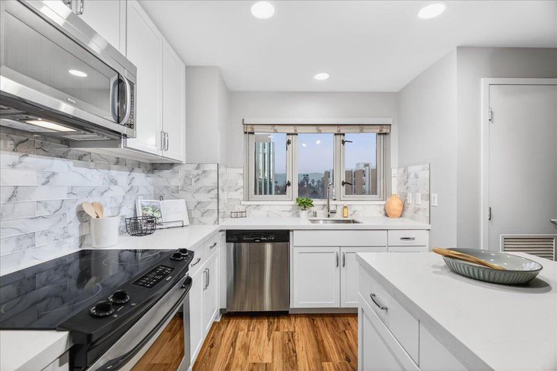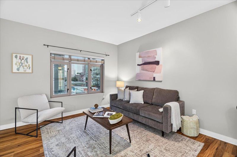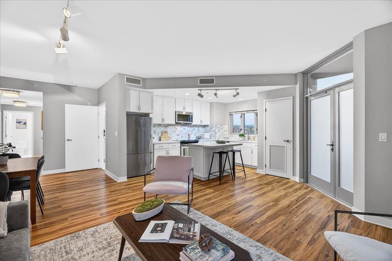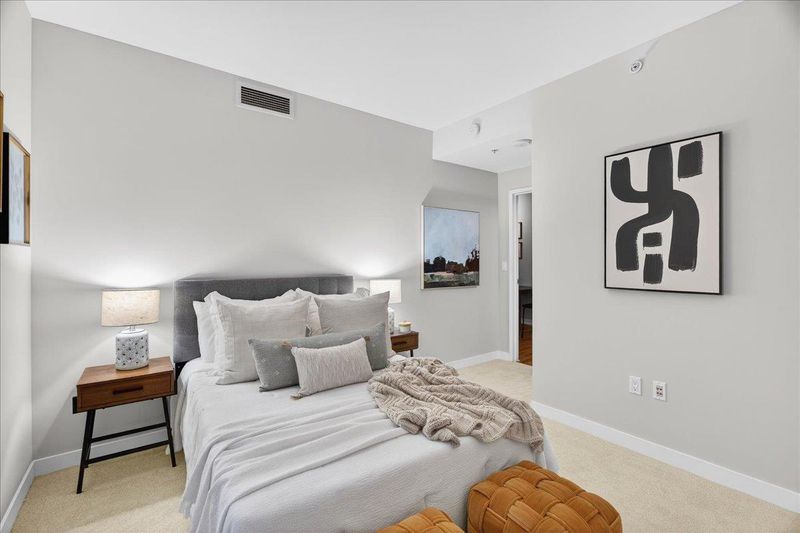 Come see this move in ready 2 bedroom 2 bathroom condo in the heart of Downtown San Jose, updated with fresh paint and new carpet throughout. The modern kitchen features quartz countertops and stainless steel appliances, flowing seamlessly into the main living area. A rare private balcony offers a nice extension of the living space. The HOA includes water, garbage, high speed internet, and access to amenities such as a fitness center, conference room, secure mailroom, stylish lobby, and onsite management. One deeded garage parking space adds exceptional convenience. Just steps from San Pedro Square, Pellier Park, and some of downtowns best dining and entertainment, with easy access to Highways 280, 101, 87, San Jose International Airport, and Caltrain. This is a great opportunity to enjoy turnkey urban living. Come experience it in person!