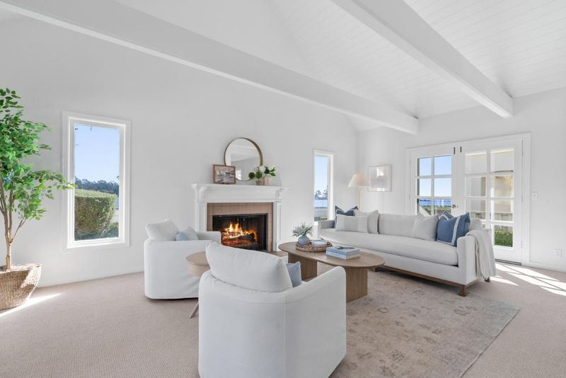 Coastal elegance in the heart of Seascape. Set on one of the most desirable lots in the community, this beautiful coastal residence offers privacy, scenic views, and effortless California living. Located at the end of a quiet cul de sac beside a one hundred acre organic farm, the home enjoys wide vistas of Monterey Bay and the surrounding countryside, creating a rare blend of serenity and natural beauty just moments from the beach. The light filled interior features vaulted ceilings, generous windows, and an easy flow between living, dining, and kitchen spaces. Warm wood flooring, a central fireplace, and soft neutral finishes enhance the inviting coastal character. The spacious ground floor primary suite provides a peaceful retreat with garden views and direct access to outdoor living areas. Upstairs, two bright bedrooms offer comfort and flexibility, including one with a private balcony ideal for enjoying ocean breezes and vibrant Seascape sunsets. The landscaped yard opens to broad greenbelt areas and farmland, giving a sense of openness seldom found so close to the coast. With nearby beaches, Seascape Resort, Seascape Golf Club, local cafes, and boutique shops, this is coastal living at its most relaxed and refined.