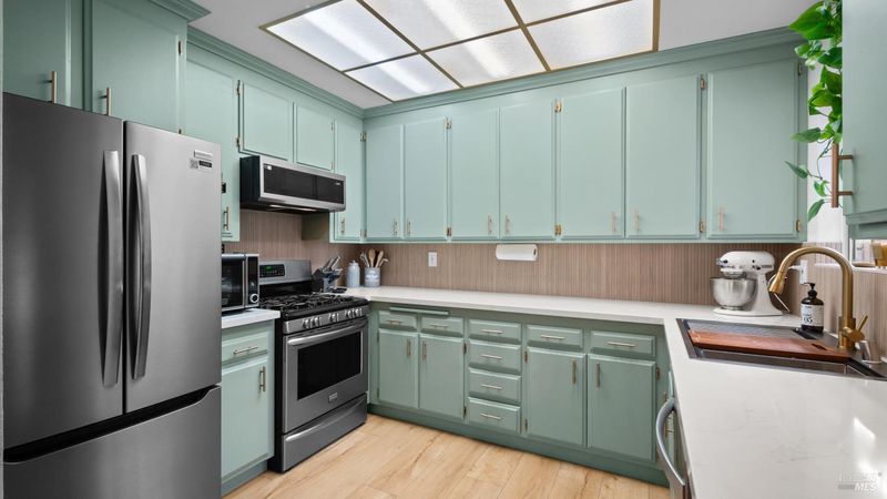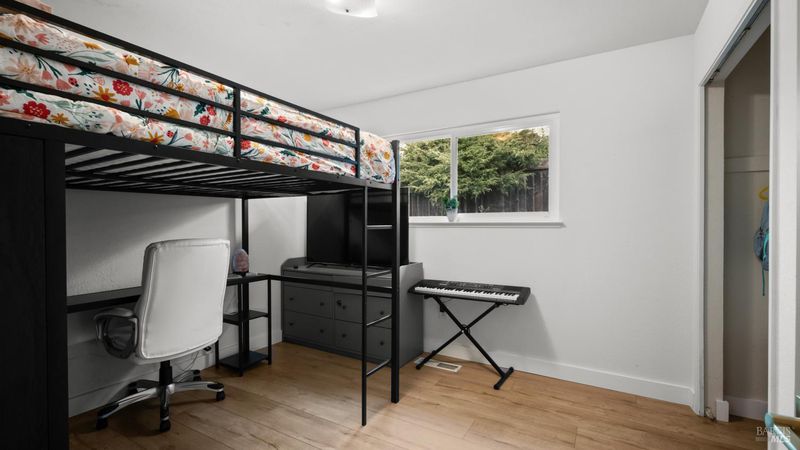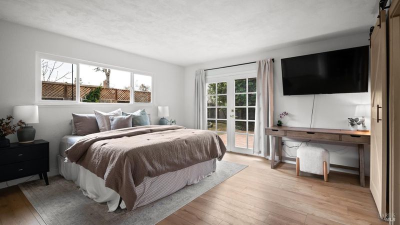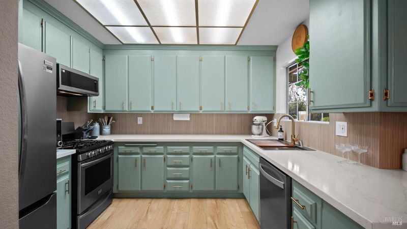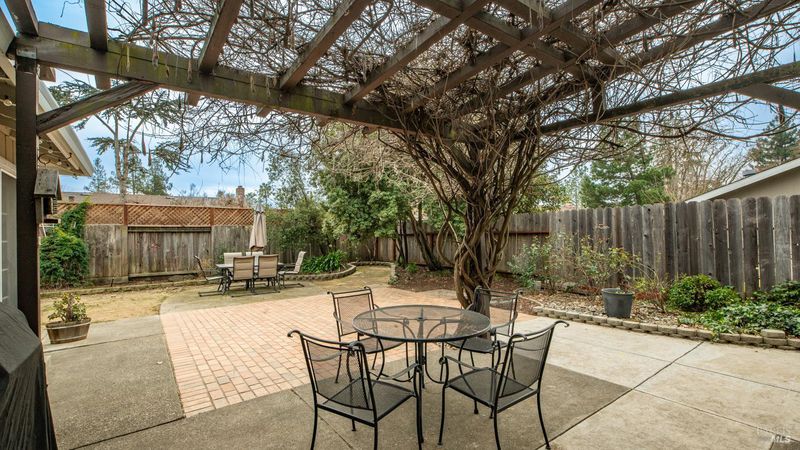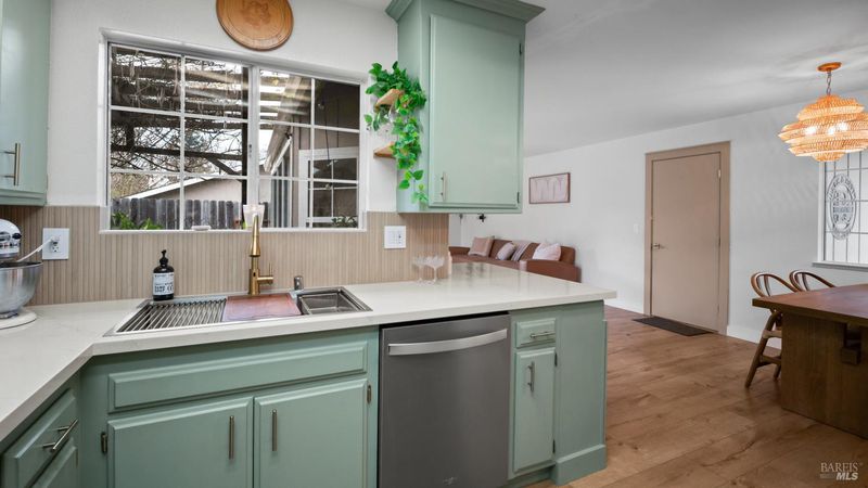 Welcome to 5412 Yerba Buena Rd, a charming single-level home located in one of Rincon Valley's most desirable neighborhoods in Santa Rosa with owned solar! Thoughtfully updated and truly move-in ready, this home offers a perfect blend of modern upgrades, comfort, and functionality on approximately 7,840 sqft lot. Recent improvements include new flooring throughout, updated door trim and baseboards, a renovated kitchen, updated bathrooms, new faucets throughout, and a Moen Flow Smart Water Shut-Off system. The home also features a fully paid solar system with battery backup, providing energy efficiency and peace of mind. The open-concept layout creates a natural flow from the living room to the kitchen and into the formal living/dining area, highlighted by a beautiful wood-burning fireplace, French doors, and built-in shelving that add warmth and character. Down the hall are three bedrooms, including a spacious primary suite with second set of French doors that open to the backyard and an updated en-suite bathroom, along with a stylish, moody hall bathroom. The spacious backyard offers a serene setting ideal for relaxing, entertaining, or play, with a stunning wisteria plant that becomes the star of the show in the spring, plus a covered carport on the side of the home perfect for parking a boat, a workshop, or additional storage. Mature landscaping in the front yard provides inviting curb appeal. Ideally located near top-rated schools, shopping, dining, and outdoor recreation including Spring Lake Regional Park, this home offers the best of Rincon Valley living in a prime and convenient location.