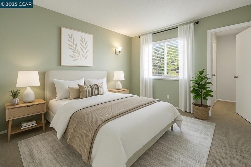 Discover comfortable living in Concord’s sought-after Del Rio Court community. This inviting two-story condo offers approx. 877 sq. ft. of well-designed space, featuring 2 bedrooms and 1.5 baths. The main level includes a bright living area and an updated kitchen with solid-surface counters, modern cabinetry, a stainless dishwasher, and direct access to the attached garage where the laundry is located — a rare convenience in condo living. Fresh carpeting, dual-pane vinyl windows, and tasteful updates throughout add to the home’s appeal. Upstairs, both bedrooms offer generous proportions and calming, neutral finishes, creating ideal spaces for rest and relaxation. Parking is effortless with an attached garage plus an additional tandem space. Residents enjoy access to the community pool and beautifully maintained greenbelt areas, while HOA dues cover water and trash for added convenience. With close proximity to shopping centers, restaurants, schools, parks, and major commute routes, this move-in-ready home delivers an easy, convenient lifestyle in a central Concord location.