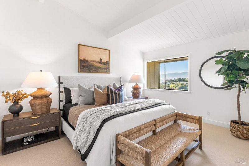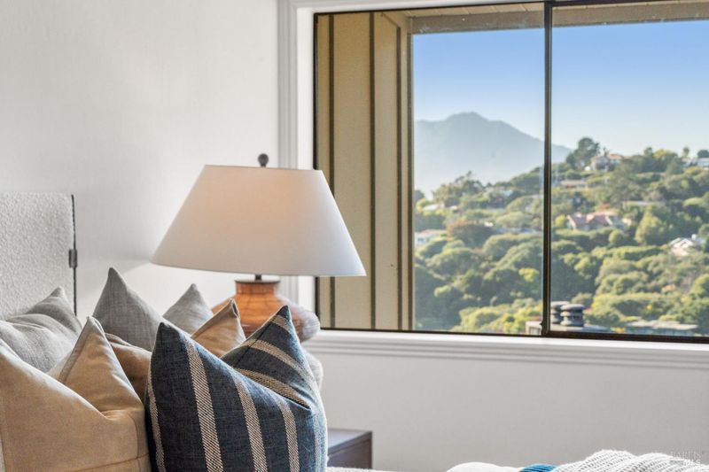 Price adjusted! Come home for the holidays to this stylish top-floor condominium with views of San Francisco and the Bay from the main living areas, as well as striking Mt. Tamalpais views from the bedrooms. Located in a well-maintained community, this two-bedroom, two-bath residence is designed for both everyday living and entertaining. High ceilings enhance the sense of openness and natural light is immediately apparent. Large windows frame the views, allowing the surrounding landscape to become a focal point of the home. The living and dining areas flow seamlessly together, creating a versatile space that can be arranged to suit your style. The condo has been thoughtfully refreshed, with a crisp, clean canvas for your furnishings and artwork. New carpet in the bedrooms adds comfort underfoot, while updated flooring in the main living areas provides durability and a modern look. Easy access to town, ferries, schools and trails. One-car deeded parking and extra storage.