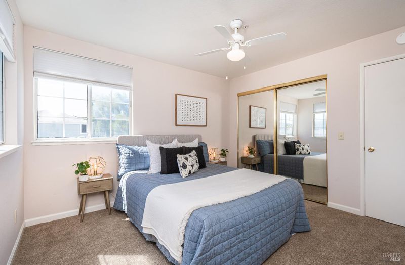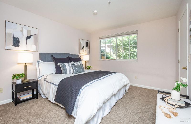 Discover effortless living in this immaculate townhome, perfectly situated in the heart of Napa Valley. This 3-bd 2-ba home is filled with natural light, and a bright, airy atmosphere. The eat-in kitchen is thoughtfully designed for efficiency, featuring generous storage and counter space. The adjoining dining area seamlessly flows into the family room, where glass doors open to an expansive wraparound yardideal for indoor-outdoor living and entertaining. A downstairs primary bedroom with full bath offers comfort and flexibility, while upstairs you'll find two spacious bedrooms with large closets and scenic mountain views. Outside, inviting spaces filled with fragrant blooms and large back patio, perfect for al fresco dining. The two-car detached garage includes storage racks for added convenience. Brand New HVAC system is a plus! Residents enjoy gated access to the river trail and close proximity to shopping, dining, and everyday essentials. This townhome presents a rare opportunity to embrace a carefree, convenient Napa Valley lifestyle in a beautifully maintained setting.