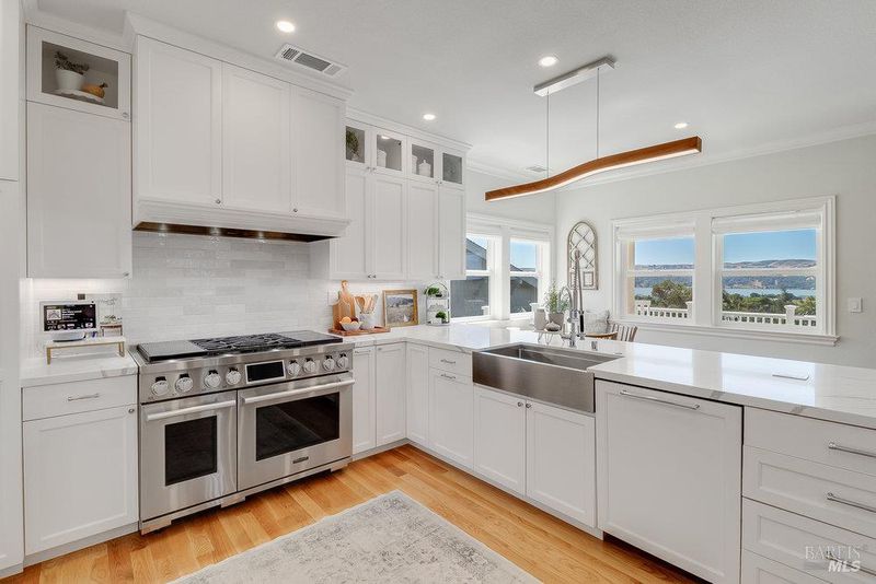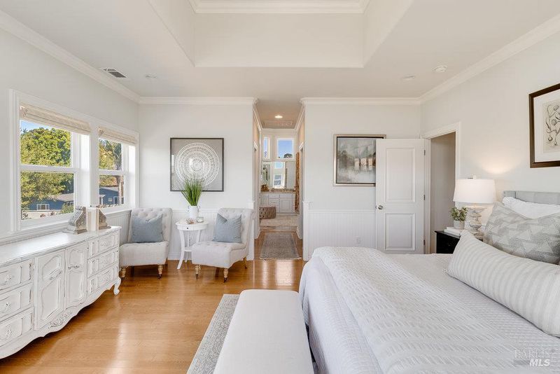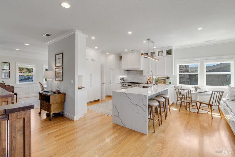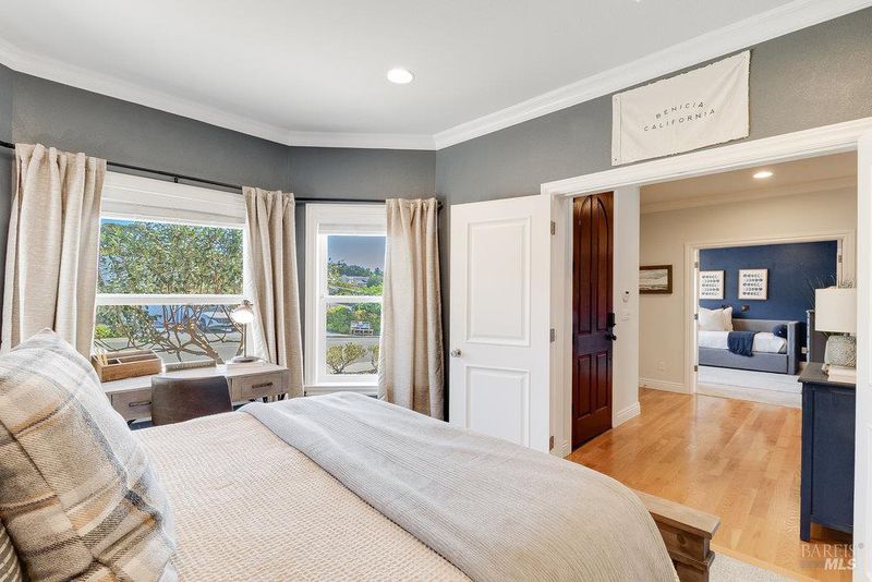 Welcome to 144 West N Street, a home that redefines downtown Benicia living. Elevated above the heart of town with sweeping bay and city views, this Cape-Cod-Contemporary residence offers more than luxury, it offers possibility. You have to walk inside and spend some time to truly feel how special this home is. Multiple levels of living create privacy, comfort, and the freedom to shape each space your way, whether you're welcoming grown kids home, caring for aging parents, or simply craving room to spread out. There's even plenty room to create your own art studio, yoga space, or creative retreat. The elevator opens to a stunning panorama of bay views and hills, a chef's kitchen, open-concept living area, and serene primary suite equally ideal for entertaining or quiet evenings in. Outdoors, enjoy al fresco dining and spectacular sunsets from beautifully landscaped grounds. Thoughtful upgrades include owned solar, tankless water heater, and motorized shades that bring modern comfort and efficiency. Just steps from Benicia's charming downtown, this is more than a home, it's a lifestyle, a gathering place, and a chance to live together without compromise. Come and explore a lifestyle designed for every stage of life.