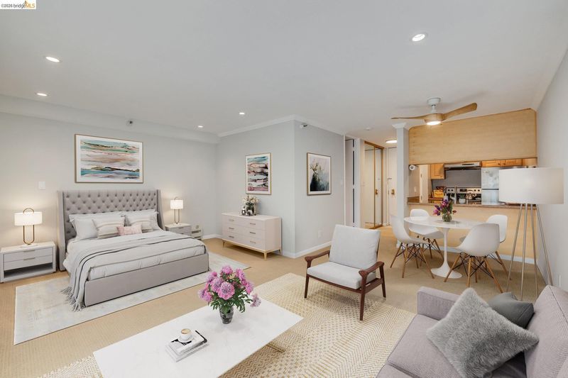 Bright, serene top-floor corner condo at 1332 Shelter Creek Lane — a peaceful retreat with abundant natural light and privacy. This thoughtfully updated unit features custom automatic window shades and tinted windows that extend to an earthquake-retrofitted balcony, creating a comfortable indoor-outdoor space. Inside, smooth ceilings, recessed LED lighting, a modern ceiling fan, and updated faucets give the home a clean, contemporary feel. The bathroom includes a roomy vanity, overhead heater, and generous walk-in closet plus an additional coat closet for excellent storage. New carpet (01/2025) adds fresh comfort underfoot. Convenience is exceptional: one assigned covered parking space, a large separate storage locker, and EV charging stations nearby. The community provides 24-hour on-site security and resort-style amenities for relaxation and recreation. Ideal for buyers seeking a move-in ready, well-appointed home in a secure, amenity-rich setting.