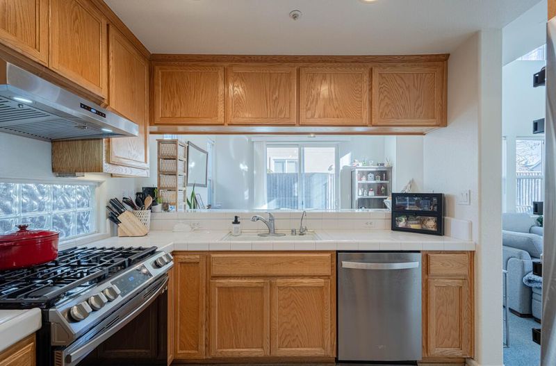 - 220 Volt Outlet, Countertop - Tile, Dishwasher, Garbage Disposal, Hood Over Range, Oven Range - Gas, Refrigerator