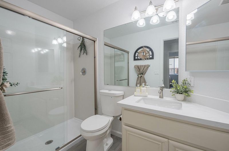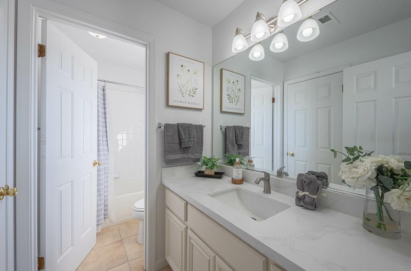 Double Sinks, Full on Ground Floor, Pass Through, Primary - Oversized Tub, Primary - Stall Shower(s), Showers over Tubs - 2+, Tile, Tub in Primary Bedroom