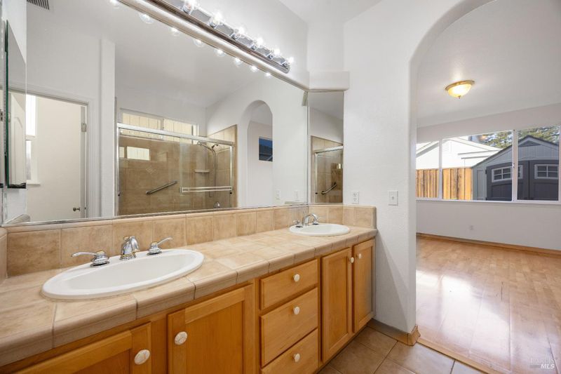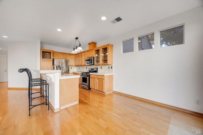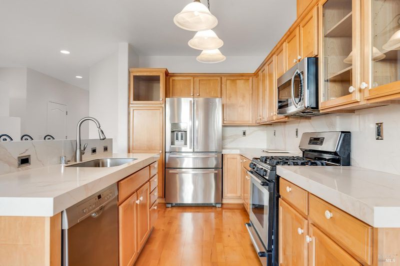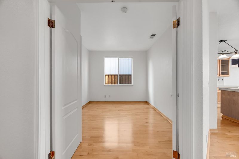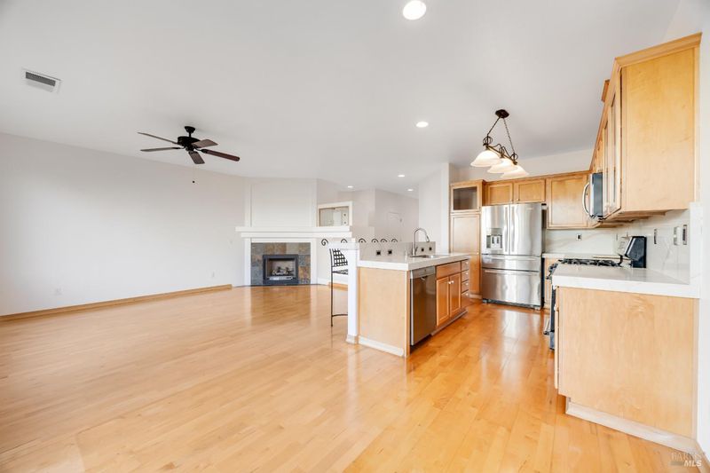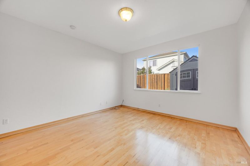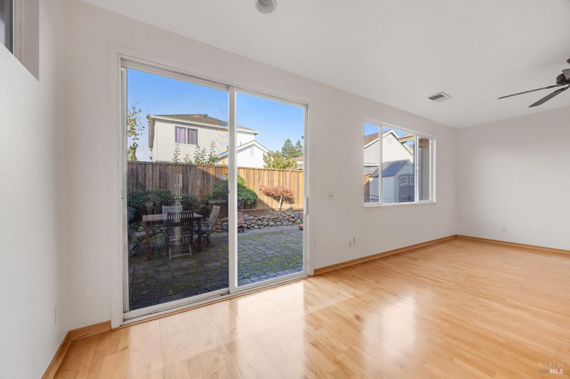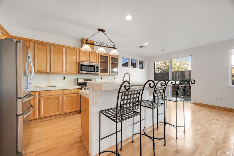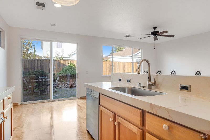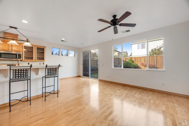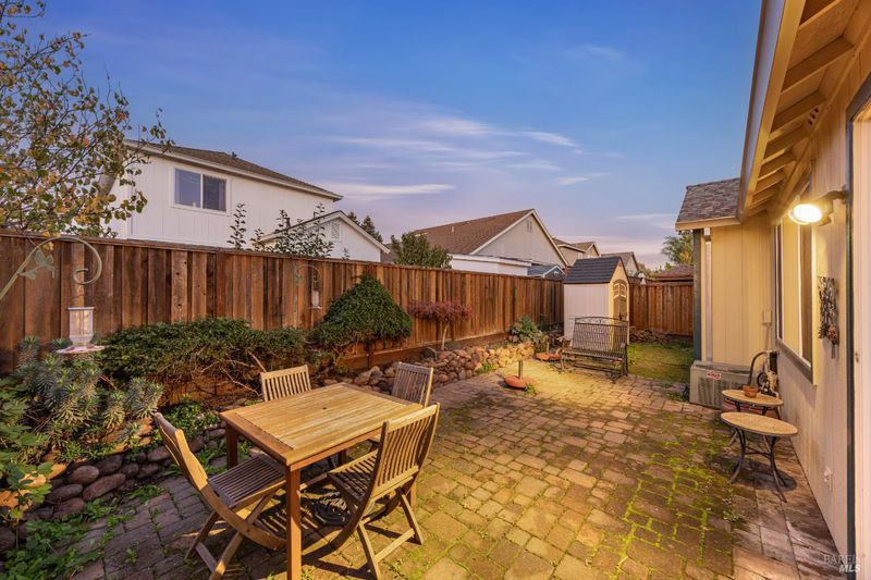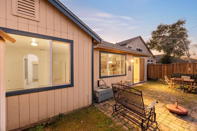 Beautifully maintained single-level home built in 2001 featuring a brand-new roof and gutters, fresh interior paint, and an inviting open floor plan. Offering 3 bedrooms, 2 bathrooms, and 1,439 sq. ft. of comfortable living space, with one bedroom currently used as a den with French doors (no closet)ideal for a home office or cozy retreat. The light-filled great room and opens to the upgraded kitchen with quartz countertops, stainless steel appliances, a dining area, and bar-height seating. Rich hardwood floors extend through the main living areas and bedrooms, while both bathrooms feature classic tile flooring. Additional conveniences include air conditioning and a full-size laundry room with cabinetry and Kenmore Elite washer and dryer. The spacious primary suite provides excellent natural light, dual sinks, and a generous walk-in closet. The charming backyard offers a paver patio and storage shed, perfect for outdoor dining or relaxing. Convenient location close to schools, parks, shopping, restaurants, and Hwy 101.