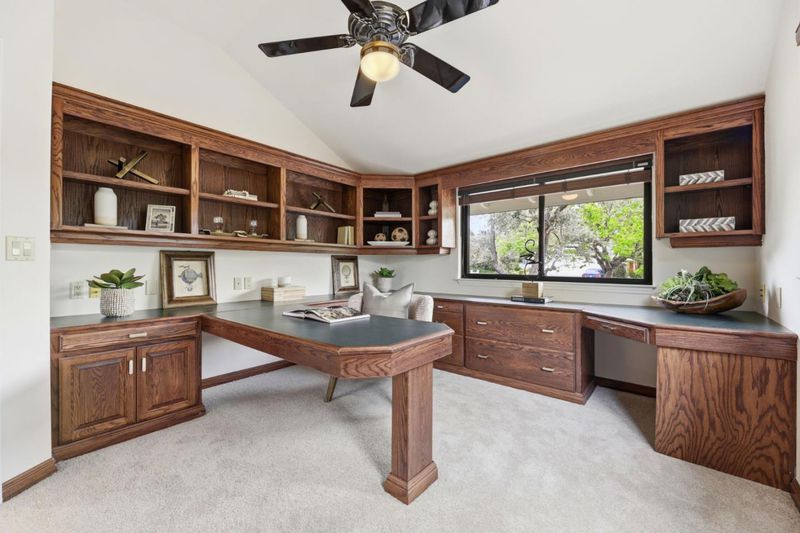Fabulous Almaden Valley gem! Substantially rebuilt & expanded in 1992. Recently refreshed w/ new interior & exterior paint & flooring. Blending comfort & thoughtful updates thru-out enjoy wide plank engineered hardwood & fresh carpet. Main level features formal living room w/ fireplace overlooking front yard, formal dining room that opens to the rear yard deck for easy indoor-outdoor flow. Sep family room w/ fireplace & built-in bookshelves for everyday living. Dedicated executive office w/ built-in workstation & cabinetry. Spacious kitchen is designed w/ function in mind, solid surface counters, 6 burner gas range, dbl oven, lg center island w/ bar sink & integrated dining nook. Butler's pantry w/ bar sink & cabinetry for storage. Wall of windows brings natural light & fills space w/ views of the backyard & pool. Upstairs, 4 generous bdrms provide comfortable accommodations. Spacious primary suite w/ 2 closets & en-suite bath. Private rear yard surrounded by mature trees for privacy, featuring refurbished elevated deck overlooking landscape & in-ground pool & spa. Gas line available for future outdoor kitchen. Wonderful location offers quick stroll to Guadalupe Elementary School, TJ Martin Park & other amenities nearby. Easy commute to Silicon Valley tech giants!