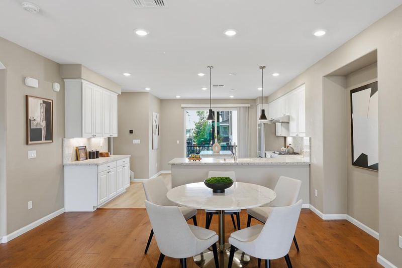 This stunning 2018-built KB Home townhouse perfectly balances modern elegance with functional design. With a desirable northeast-facing orientation, the residence is bathed in natural light through oversized windows, highlighting its airy, open-concept floor plan. At the heart of the home, the chefs kitchencomplete with sleek white cabinetry, a grand center island, quartz countertops, and premium stainless steel appliancesflows seamlessly onto a private balcony, ideal for morning coffee or evening relaxation. The luxurious primary suite features an expansive walk-in closet and a dual-sink vanity. For added versatility, the secluded ground-level bedroom suite is perfect for guests, a home office, or multigenerational living. Additional premium upgrades include a 3-zone HVAC system for personalized comfort, a true side-by-side two-car garage, and low HOA dues for added value and peace of mind. Unbeatable location: minutes from major tech campuses, BART, Great Mall, and major freeways. With access to top-rated Milpitas schools, this home offers a rare blend of style, convenience, and community.