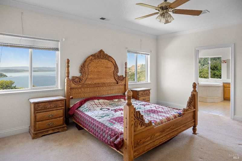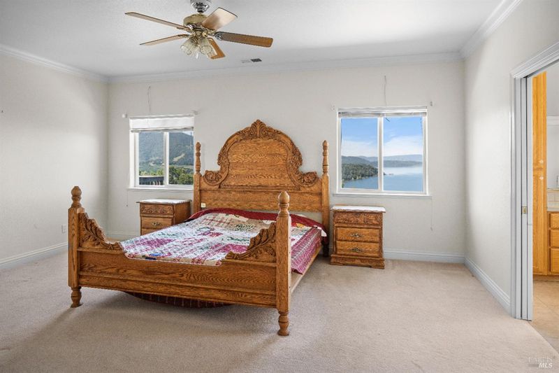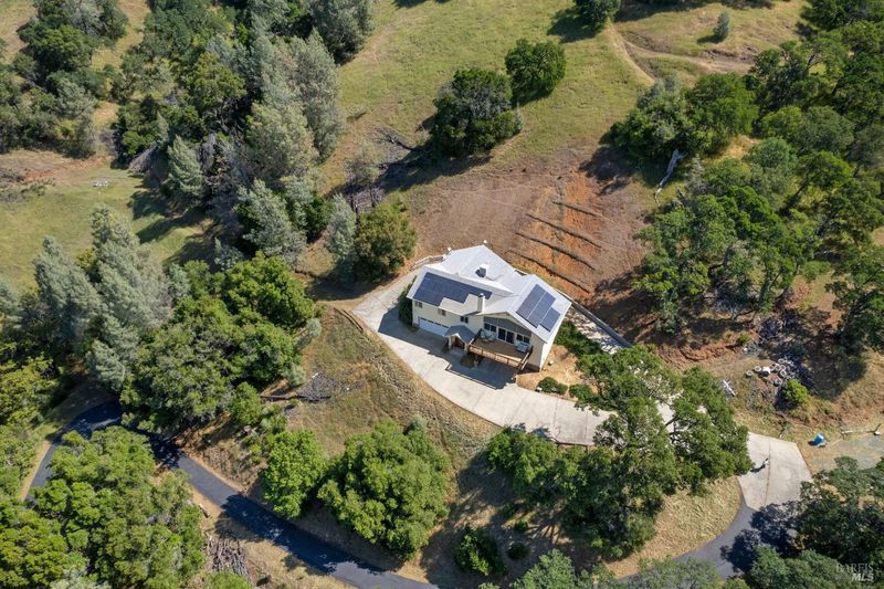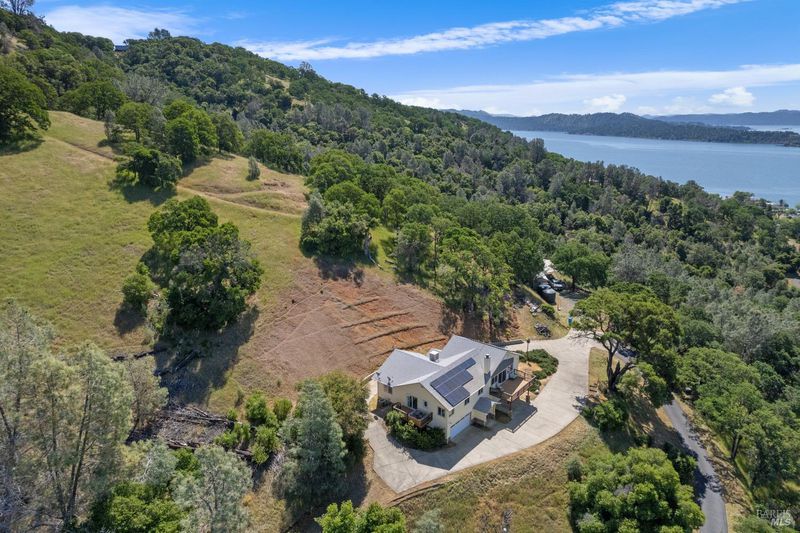 Property is back on market to no fault of the property, buyer fell ill. Spectacular lake views and beyond! This incredibly clean 3 bedroom 2 bathroom 2,168 sf home is offered FULLY furnished and ready to move in..today! The house is two stories, with living area upstairs and a stairway down to the two garages (1,222 sf combined) below the main house. Situated on picturesque 42.46 acres, this private gated estate offers 35 solar panels with a double tesla battery power wall, new AC and Heating units (2024), 12'x20' outbuilding/shed and RV/carport parking, a well and spring that feed Two 2,500 gal water storage tanks, two 5,000 gal water storage tanks and new flooring that is around 2 years old, complete the long list of attributes. For the ultimate outdoor lover, this oak studded property also has hiking & ATV trails, wild game, and did I mention the vast, 1m dollar views!